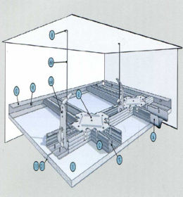 Элементы металлического каркаса между собой соединяют оцинкованными саморезами длиной 12 мм. На конце самореза расположено сверло, что значительно облегчает монтаж. К стенам и потолку каркас крепится пластиковыми дюбелями и саморезами длиной 60 мм. К каркасу крепятся плиты гипсокартона. Он имеет следующие размеры: ширина 1200 мм, длина 2500-3000 мм, толщина 12.5 мм. Крепление производят саморезами 25х3.5мм. Существует много разных технологий монтажа каркаса. Конечно, если использовать качественные профиля, толщиной 0.6мм и более, то можно применять любую из них, но на практике мы применяем схему монтажа, с ячейкой каркаса 400х600мм. По желанию заказчика мы можем применить любую схему технологий КНАУФ.